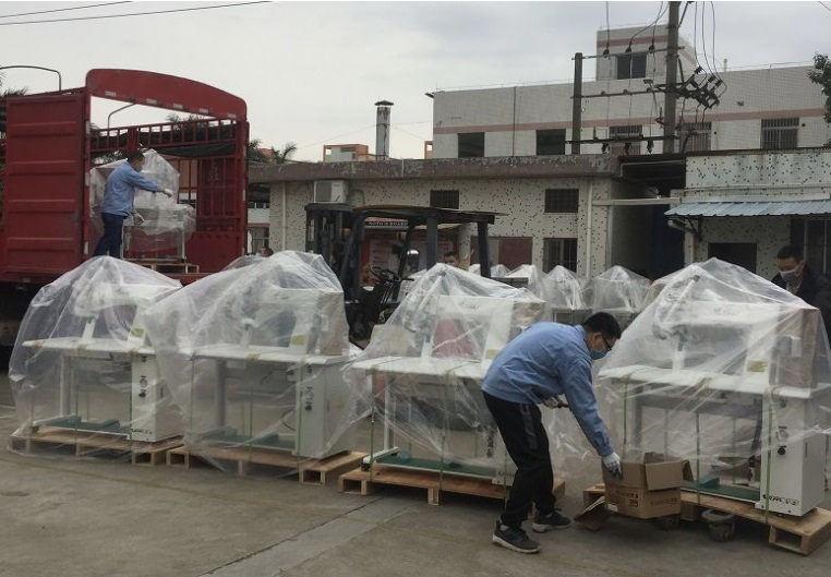 今天下午4時(shí)許,位于高新區(qū)(江海區(qū))的鐵金剛機(jī)械有限公司出產(chǎn)廠區(qū), 近40臺(tái)熱風(fēng)縫口密封機(jī)設(shè)備通過(guò)緊張的備貨、拼裝后,將運(yùn)至湖北地區(qū),馳援當(dāng)?shù)氐姆雷o(hù)服生產(chǎn)?!弊鳛橐患沂滓霎a(chǎn)防護(hù)服壓條工藝設(shè)備的企業(yè),我們更要體現(xiàn)出社會(huì)責(zé)任和擔(dān)當(dāng),全力以赴助力物資設(shè)備的供給?!痹撈髽I(yè)負(fù)責(zé)人劉國(guó)強(qiáng)說(shuō)。